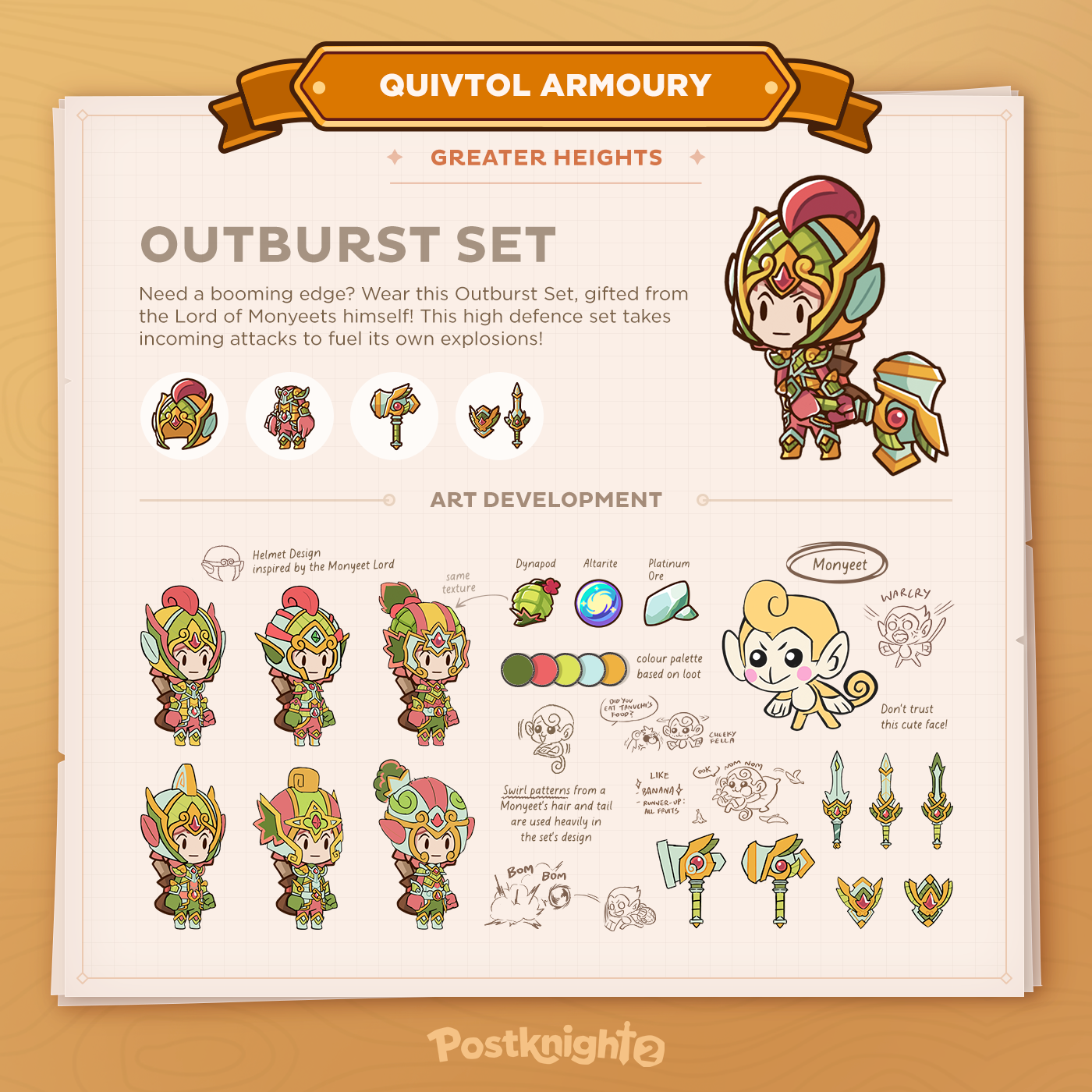 BOOM! Lord over those cheeky Monyeets with this explosive gear! Fight the Monyeets and collect your Outburst Set at Sagacia.